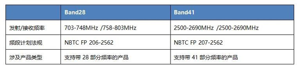 2020年10月26日,NBTC決定駁回僅支持Band 28和Band 41部分頻段的WWAN用戶設(shè)備申請。