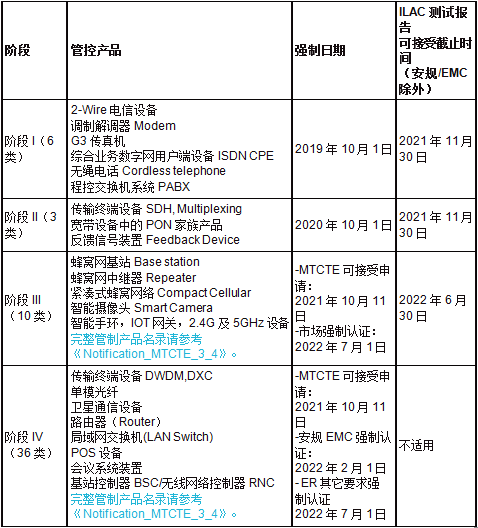 2021年9月22日,印度電信工程中心TEC發(fā)布關(guān)于第三&第四階段強(qiáng)制電信設(shè)備管控清單,其中Phase III涵蓋10類,Phase IV 涵蓋36類產(chǎn)品。