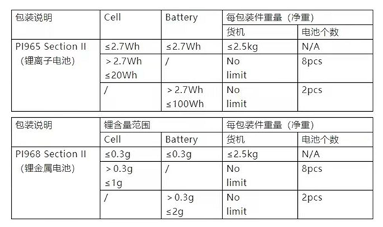 1. 刪除了PI965 (鋰離子電池單獨包裝運輸,UN3480)Section II和PI968 (鋰金屬電池單獨包裝運輸,UN3090)Section II的章節(jié)內容。國際民用航空組織ICAO指出這兩種運輸方式針對的都是小能量鋰電池,在滿足標準的前提下可以不受限與危險品空運規(guī)范,可按普通貨物運輸。